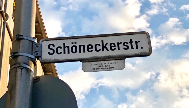Benannt ist die Straße auf dem ehemaligen Gelände der Hindenburg-Kaserne nach Ludwig Schönecker, ehemaliger Oberbürgermeister und Ehrenbürger der Stadt Ansbach.