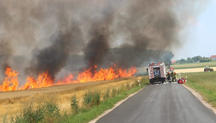 Heilsbronn – Ca. 45.000 Euro Sachschaden entstand am Dienstagnachmittag kurz nach 14 Uhr, als zwischen Heilsbronn und Ketteldorf ein Mähdrescher und ein Getreidefeld in Brand geriet. Beim ersten Entleeren des vollen Getreidetanks auf einen Anhänger stellte der 66-jährige Landwirt Rauch neben seinem Führerhaus fest. Als er daraufhin zurücksetzte, musste er feststellen, dass die Stoppeln unter seinem Mähdrescher bereits brannten. Er verließ die Erntemaschine und setzte einen Notruf ab. Begünstigt durch die Trockenheit und durch den böigen Wind brannte der Mähdrescher aus und die Flammen griffen auf das gesamte Feld über, so dass ca. 4 ha Getreide verbrannten. Örtliche Landwirte unterstützten die eingesetzten Feuerwehren aus Heilsbronn, Dietenhofen, Neuendettelsau und den umliegenden Heilsbronner Ortteilen mit ihren wassergefüllten Güllefässern. Mit vereinten Kräften konnten die ca. 80 Feuerwehrleute den Brand schließlich unter Kontrolle bringen. Glücklicherweise wurde niemand verletzt.
