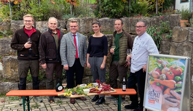 Ansbach, 21. Oktober 2022, „Regionalvermarktung liegt dem Landkreis schon seit Jahrzehnten am Herzen, er unterstützt diese in vielfältiger Weise“, sagte stellvertretender Landrat Stefan Horndasch anlässlich der Fortsetzung der Kampagne „Heimat schmecken im Landkreis Ansbach“. Damit verfolgt das Regionalmanagement am Landratsamt Ansbach das Ziel, den Verbrauchern die Direktvermarkter und ihre regionalen Produkte näher zu bringen. „Herbstzeit ist Wildzeit – regional genießen in der Gastronomie“ lautet das saisonale Motto, das Gastronom Lars Zwick im Landgasthof „Zum Falken“ in Tauberzell bei Adelshofen mit variantenreichen Wildspezialitäten unterstrich. Dabei überraschte er unter anderem mit Wildleberkäsesemmeln und Preiselbeerdip.