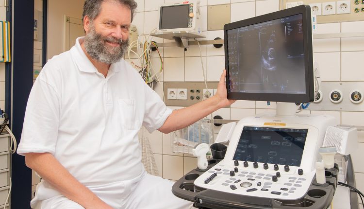 Weil der neue Schallkopf auch für Untersuchungen des Bauchraumes geeignet ist, hat PD Dr. Christian Wacker selbst den Wunsch zur Anschaffung der 5.600 Euro teuren Erweiterung geäußert. „Wir haben dadurch die Möglichkeit, das in unserer Ambulanz bereits vorhandene High-End-Echogerät noch umfangreicher einzusetzen“, erklärt der Chefarzt der Inneren Medizin der Klinik Rothenburg. Bei Patienten mit komplexen Krankheitsbildern sind oft mehrere Ultraschalluntersuchungen notwendig. Stehen etwa eine Sonografie des Herzens und der Halsgefäße sowie zusätzlich ein Bauch-Ultraschall auf dem Plan, wurde der Patient bisher in der Regel zu unterschiedlichen Zeiten an verschiedenen Geräten untersucht.