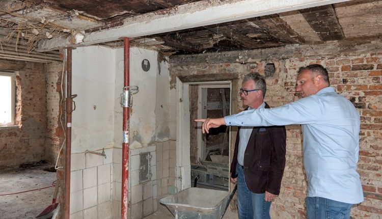 Seit Ende Juni sind die Rückbauarbeiten im vollen Gange. Bereits erfolgreich entfernt ist das gesamte neuzeitliche Baumaterial im Inneren des Anwesens. Parallel sind die ersten Ausschreibungen größerer Gewerke inzwischen abgeschlossen. Wie KU-Vorstand Arthur Reim hierzu mitteilte, liegen die eingegangenen Angebote nach erster Durchsicht weitgehend im kalkulierten Kostenrahmen.