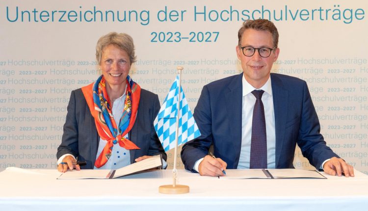 Triesdorf 26. September 2023 – Wissenschaftsminister Markus Blume und die Leitungen der 33 staatlichen bayerischen Universitäten und Hochschulen haben die individuellen Hochschulverträge für den Zeitraum bis Ende 2027 unterzeichnet. Das Inkrafttreten der Vereinbarung bringt der Hochschule Weihenstephan- Triesdorf (HSWT) insgesamt 6,2 Millionen Euro Finanzmittel für die nächsten fünf Jahre.