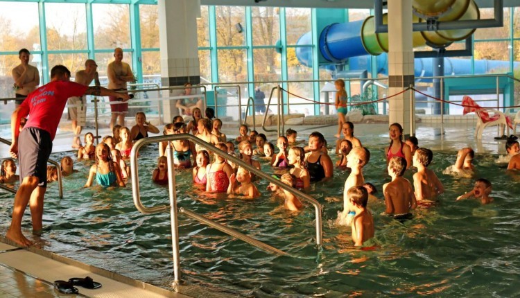 ohne zusätzliche Eintrittskosten und eine Teilnahme jederzeit möglich. Fast alle Badegäste nahmen am Event teil, die anderen Badegäste nutzen den Rest des Bades für sich.
