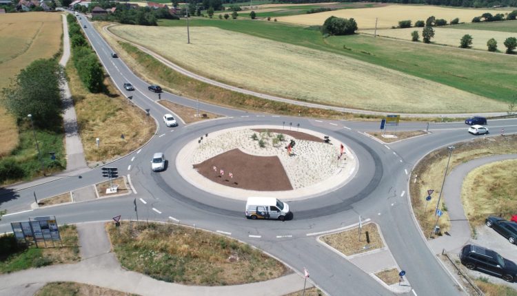 Feuchtwangen, 9. Juli 2023 – Die Stadt Feuchtwangen hat den Kreisverkehr westlich des Rehau-Werks an der Daimlerstraße und Staatsstraße 1066 erfolgreich umgestaltet. In den vergangenen Wochen hat das Team des städtischen Bauhofs und der Stadtgärtnerei den Verkehrsknotenpunkt am Rande der neuen Feuchtwanger Westtangente zu einer lebendigen und nachhaltigen Insel mit trockenheitsresistenten Stauden und vielfältigen Blühwiesen verwandelt.