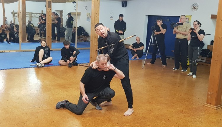 Thema des Lehrgangs war Filipino Combat Systems (FCS), ein System, welches die verschiedenen philippinischen Kampfkunstsysteme verbindet. Eines davon ist „Kali“, deren Wurzeln sich bist in das 9. Jahrhundert zurückverfolgen lassen. Kali ist ein auf Waffen basierendes Trainings-System, welches in der Basis mit Rattan-Stöcken trainiert wird. Das Besondere: die eintrainierten Bewegungsmuster funktionieren auch mit Messern oder waffenlos.