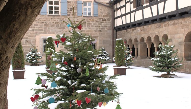 Feuchtwangen. 22. Dezember 2022 – Im Feuchtwanger Kreuzgang inmitten der historischen Altstadt ist es seit Mitte Dezember richtig weihnachtlich. Mehrere von Kindern liebevoll gestaltete Weihnachtsbäumchen versprühen mit ihrem einzigartigen Schmuck weihnachtliche Stimmung und lassen dabei gleichzeitig tolle selbstgebastelte Weihnachtsdekoration, von unterschiedlichen Sternen, über Herzen bis hin zu bunten Weihnachtskugeln, entdecken.