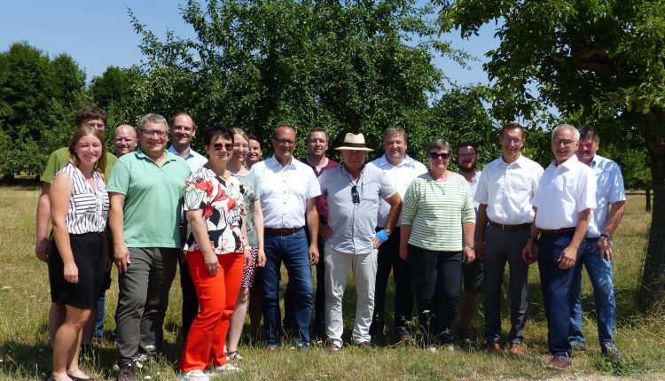 Biodiversität und Umweltmaßnahmen konnten alle Akteure im Pomoretum der Landwirtschaftlichen Lehranstalten Triesdorf im Rahmen einer Führung erleben. Gärtnermeister Simon Schnell erläuterte die Anlage mit 1700 Sorten Äpfel, Birnen und Zwetschgen. In Triesdorf werden die verschiedenen Anbauoptionen in der Praxis gezeigt: von Streuobstgelände, klassischer Anlagenpflanzung mit Halbstammbäumen und Spindelbäumen zur Sortensicherung. Pflegeaufwand, Arbeitsprozesse und Biodiversitätswirkung unterscheiden sich dabei enorm. Kurz gesagt, Streuobstwiesen sind für Sortenerhaltung und Biodiversität wertvoller. In der Realität entscheiden Verbraucherinnen und Verbraucher mit ihren Kaufentscheidungen über die Gestaltung der Anbauverfahren und die Vielfalt im Obstanbau. Wichtig ist, Verständnis zu schaffen und Biodiversität integrativ zu gestalten.