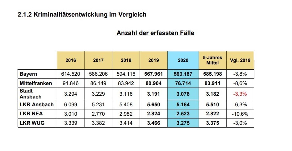 Zurück zu "+++ Kriminalstatistik 2020 des Landkreises Ansbach +++" Entwicklung Foto: Polizeipräsidium Mittelfranken Nächster Anhang Letzter Anhang