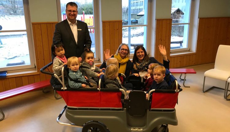 12 Krippenkinder dürfen nun hinaus in die Welt und haben Ihr Fahrzeug heute in Ihr Herz geschlossen. Der Krippenwagen wurde durch Sponsoren finanziert, an den 1.800 Euro Anschaffungswert beteiligte sich der Lions Club Christiane Charlotte Ansbach, die Hilterhaus-Stiftung, Fa. Piano Fricke, die Stadtwerke Ansbach sowie die Sparkasse Ansbach.