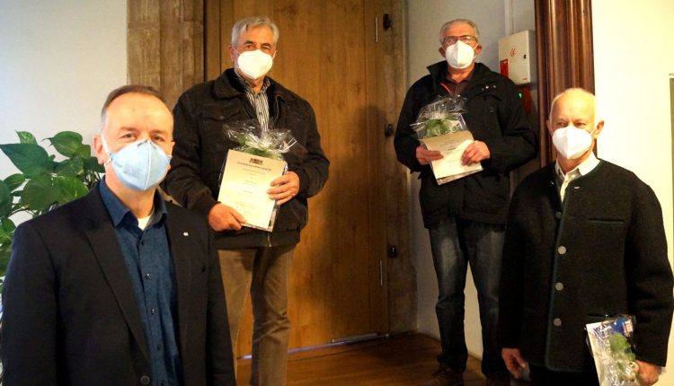 Aus den Händen von Oberbürgermeister Thomas Deffner erhielten jetzt drei Feldgeschworene im Sitzungssaal des Stadthauses Ehrenurkunden für langjährige Verdienste als Feldgeschworene im Stadtgebiet Ansbach.