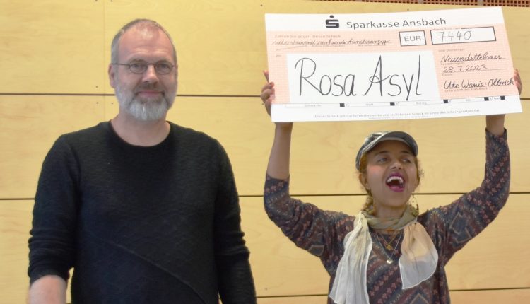 Neuendettelsau, 4. August 2023 – „Es ist eine unglaubliche Ehre. Vielen Dank! Damit können wir ganz vielen Menschen helfen, die gar nichts haben“, freut sich Elshaday Haile über alle Maßen, als der Scheck für Rosa Asyl übergeben wird. Es sind stolze 7440 Euro geworden, die die Schülerinnen und Schüler des Diakoneo Laurentius-Gymnasiums dem Nürnberger Projekt spenden.