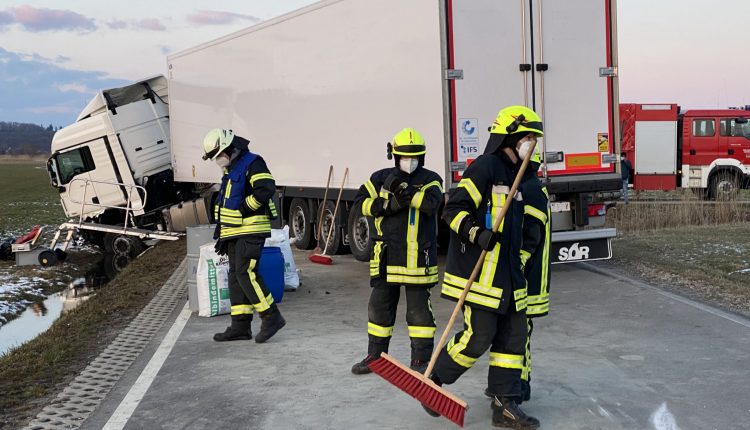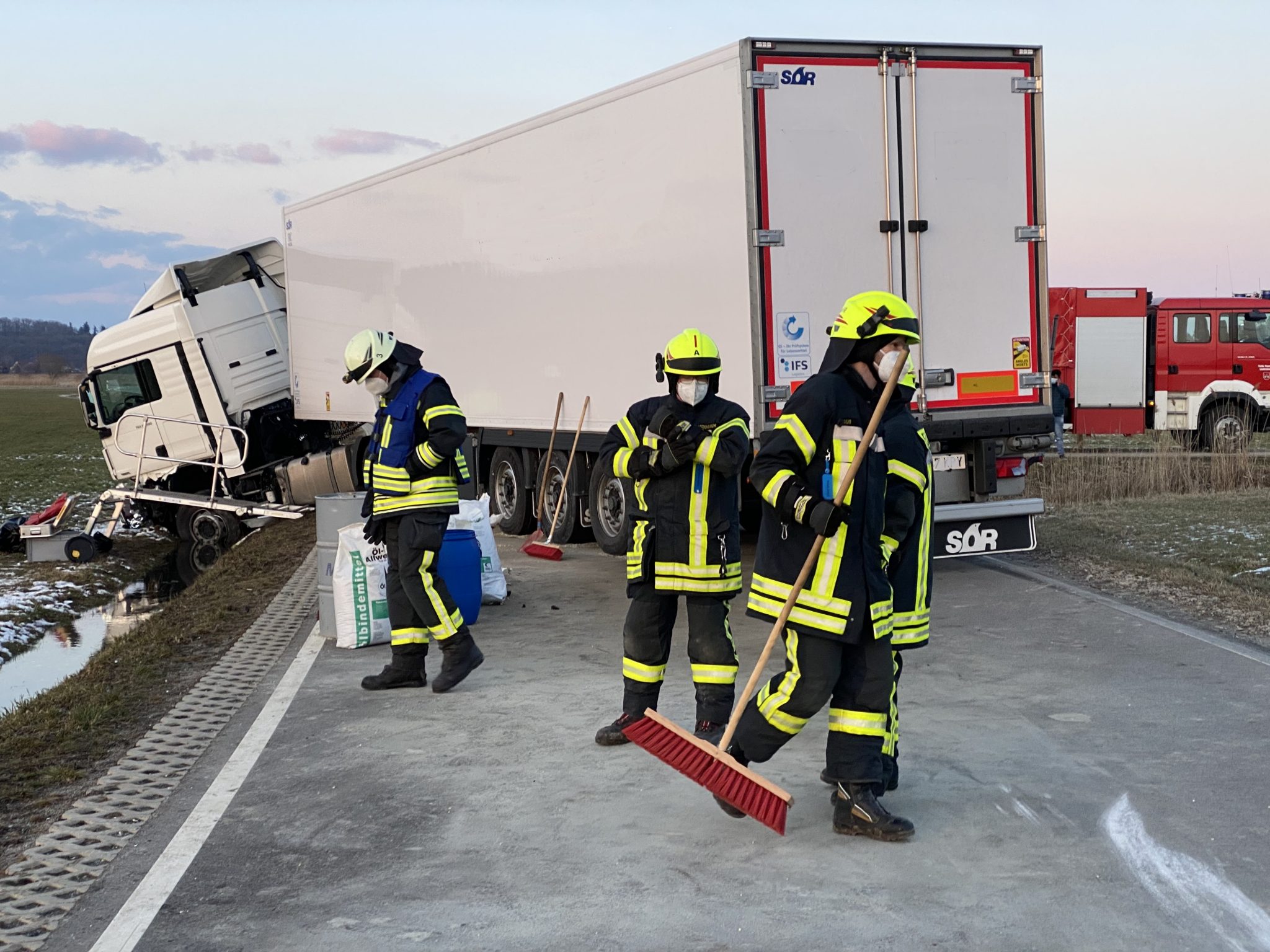 Die freiwillige Feuerwehr Leutershausen wurde zum Abbinden von Kraftstoff verständigt, da aus dem Lkw Diesel in den Straßengraben lief.