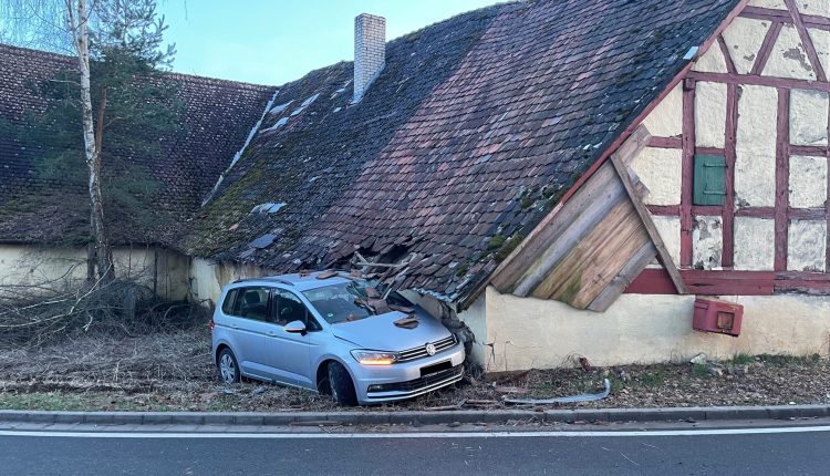 Am Samstagabend, 2. März 2024 gegen 17:00 Uhr, befuhr ein 20-jähriger mit seinem Pkw die Kreisstraße zwischen Wattenbach und Unterrottmannsdorf. Kurz vor der Erlenmühle verlor der Fahrzeugführer aufgrund nicht angepasster Geschwindigkeit die Kontrolle über den Pkw und kam nach links von der Fahrbahn ab. Der Pkw schleuderte in eine Scheune der dortigen Mühle und kam dort zum Stillstand.