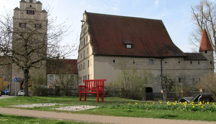 Nehmen Sie Platz auf der Roten Bank in Dinkelsbühl
