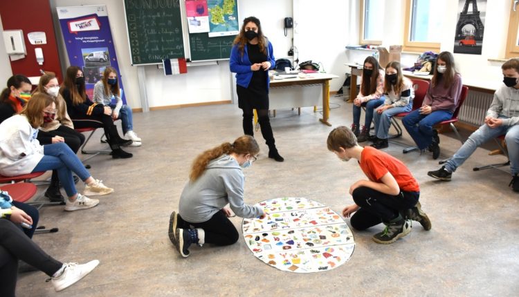 Eine Fremdsprache zu lernen muss nicht langweilig sein. Deswegen hat Anaïs Boulord einige Sprachspiele imGepäck, als sie die 6. Jahrgangsstufe der Diakoneo Laurentius-Realschule besucht. Die Lektorin des FranceMobil stellt den Kindern mit Spiel und Spaß die französische Sprache und Kultur vor und motiviert sie, die Entscheidung für die bevorstehende Wahl des Wahlpflichtfachs zu treffen.