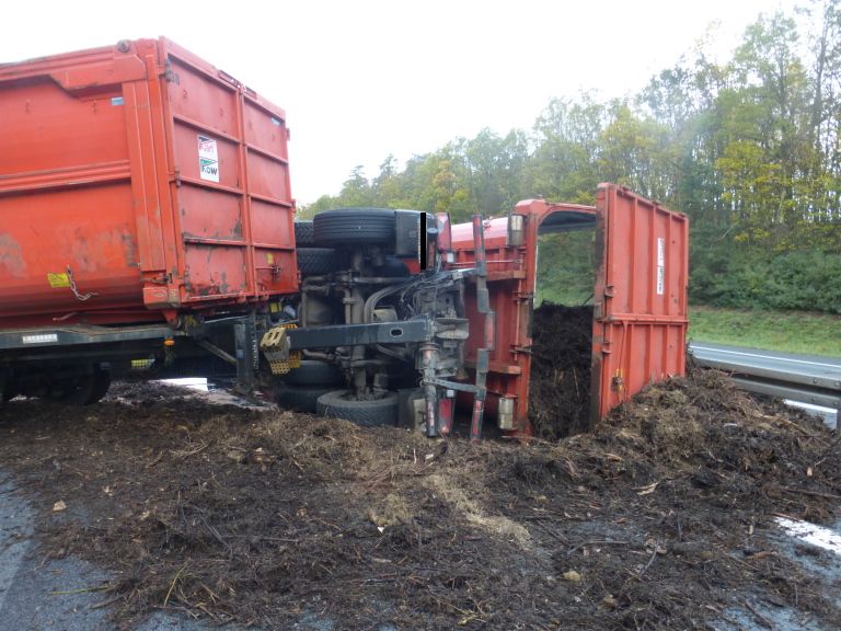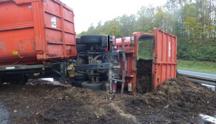 Am Dienstag, 05.11.19, gegen 09:50 Uhr fuhr ein 46-jähriger Bulgare, unterwegs mit einem Lkw mit Anhänger, auf der BAB 6 in Richtung Waidhaus. Kurz vor der Anschlussstelle Neuendettelsau kam er aus Unachtsamkeit nach rechts ins Bankett und übersteuerte dann nach links. Dadurch knickte der Lkw mit Anhänger ein. In Folge kippte der Lkw auf die rechte Seite und verlor einen Großteil seiner Ladung (Kompost) auf der linken und geringfügig auf der Gegenfahrbahn. Der Fahrer hatte sich beim Umkippen seines Lkws selbst leicht verletzt und wurde im KH Neuendettelsau ambulant versorgt.