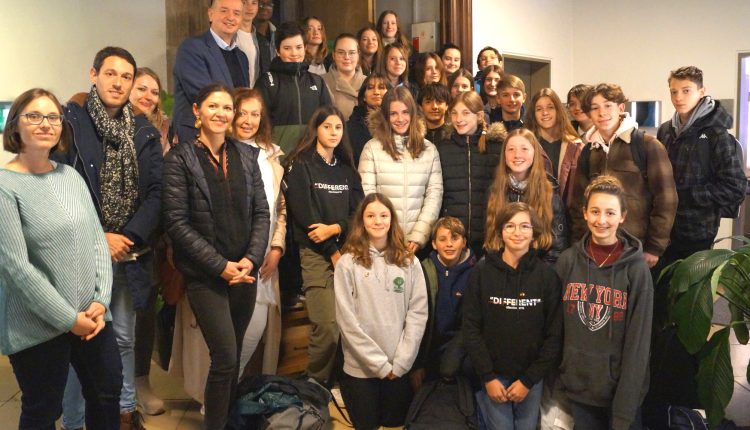 Ansbach, 7. Dezember 2022 – Die Teilnehmerinnen und Teilnehmer des Schüleraustausches zwischen zwei Schulen in Bayonne, dem Collège Largenté und dem Collège Saint Bernard, und der Staatlichen Realschule in Ansbach wurden von Oberbürgermeister Thomas Deffner empfangen.
