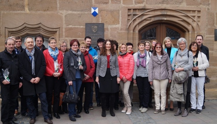 Für ihren jahrzehntelangen Einsatz für die Stadt Ansbach ehrte Oberbürgermeisterin Carda Seidel 28 Mitarbeiterinnen und Mitarbeiter, die im Jahr 2016 ihr 25- oder 40-jähriges Dienstjubiläum gefeiert hatten. Bei einem kleinen Sektempfang in der Gotischen Halle bedankte sich Seidel für das hohe persönliche Engagement und die gute geleistete Arbeit der Mitarbeiterinnen und Mitarbeiter über Jahrzehnte hinweg. Sie hob die Besonderheit einer so langen Treue zu einem Arbeitgeber in der heutigen Zeit hervor. Ebenfalls mit angestoßen haben die Mitarbeiterinnen und Mitarbeiter, die 2016 in den Ruhestand verabschiedet wurden. Die Oberbürgermeisterin dankte ihnen für ihre geleistete Arbeit.