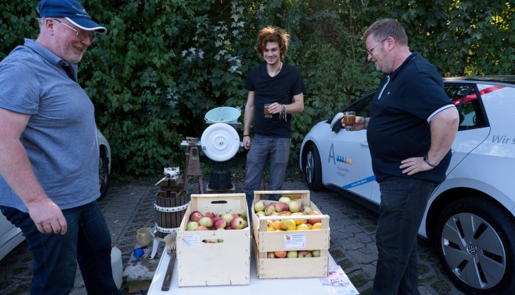 Ansbach, 21. September 2024 – Der ÖDP Ortsverband Ansbach beteiligte sich am 20. September 2024 mit einer „saftigen“ Idee am Park(ing) Day. Mit Äpfeln von der eigenen Streuobstwiese wurde vor den Augen der interessierten Passanten am Rezatparkplatz Apfelsaft gepresst. Frisch und naturtrüb bei spätsommerlichen Temperaturen war der Apfelsaft sehr begehrt und so wurden mehrere Kilogramm Äpfel mit der Obstmühle gehäckselt und in der Spindelpresse gepresst.