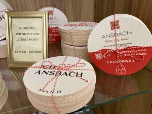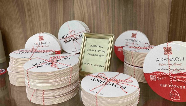 Ab sofort können Interessierte eine limitierte Auflage der neuen „Ich <3 Ansbach“-Bierdeckeln erwerben. An der Tourismusinformation stehen handgepackte Päckchen für den Verkauf bereit. 25 Stück kosten 5 Euro. Dabei kommen 50 Prozent des Verkaufspreises und somit der komplette Gewinn der Stiftung „Bürger in Not“ der Stadt Ansbach zugute.
