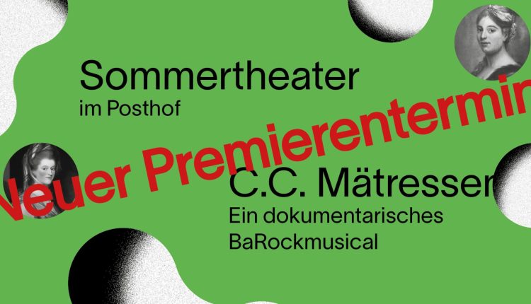 Die für diesen Donnerstag 30.6. geplante Premiere des Sommertheaters „C.C. Mätressen – Ein dokumentarisches BaRockmusical“ muss aufgrunf mehrerer Krankheitsfälle im Team um eine Woche auf den 7.7.2022 verschoben werden. Dadurch entfallen auch die Vorstellungen am 2. Und 3.7.2022. Bereits erworbene Karten können an der jeweiligen Vorverkaufsstelle zurückgegeben oder umgetauscht werden.