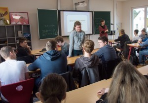 In der zweiten Runde wurden die Proteine und ihre Funktion unter die Lupe genommen. Anschließend ging es mit dem Thema „Überdosierung oder Unterversorgung“ weiter. Dabei wurde auch über den Proteinbedarf und die Bausteine einer gesunden Ernährung gesprochen. „0,8g Eiweiß pro Kilogramm Körpergewicht reichen völlig aus, um Muskeln aufzubauen“, erklärten Franziska Schuster und Katharina Kiowski.