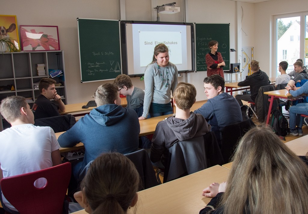 Sie betonten, dass der tägliche Bedarf an Proteinen problemlos über eine gesunde, ausgewogene Ernährung aufgenommen werden könne und betonten, dass es keinen Nachweis dafür gebe, dass die zusätzliche Einnahme von Proteinshakes effektiv und wirksam sei. Um das zu unterstreichen, durften die Schülerinnen und Schüler während der Pause einen selbstgemachten Proteinshake aus Quark, Milch und Himbeeren probieren.