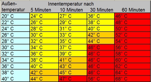 In diesem Zusammenhang kann man nur warnen: Bitte lassen Sie bei solch heißen Temperaturen Ihr Kind oder Ihre Tiere nicht im Auto – dies kann sehr schnell zur tödlichen Falle werden.