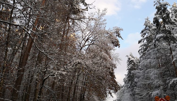 Sachsen b. Ansbach +++ Schnee bringen erste Bäume zum Bersten – Vollsperrung der AN 12 – Schneebruchgefahr +++