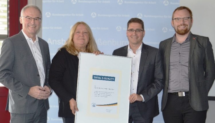 Ansbach, 16. September 2024 – Zum dritten Mal in Folge nach 2018 und 2021 erhält die Agentur für Arbeit Ansbach-Weißenburg das Prädikat „Total E-Quality“. Damit wird ihr Engagement für Chancengleichheit und Vielfalt honoriert. Besonders durch die sehr gute Vereinbarkeit von Beruf und Familie fördert die Arbeitsagentur die Chancengleichheit von Frauen und Männern.