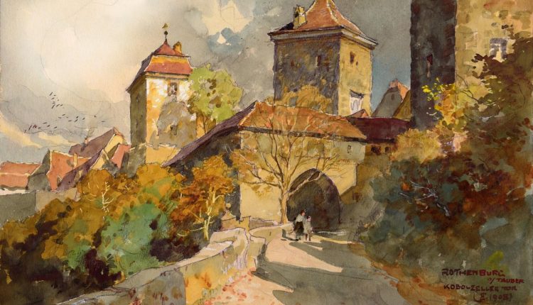 Unter dem programmatischen Titel „Pittoresk! Selbstbild – Fremdbild – Wiederaneignung“ wird eine zweijährige Sonderausstellung einen bildmächtigen Zugriff auf die Tauberstadt vom 18 Jahrhundert bis in die Gegenwart präsentieren. Repräsentative, auf die Zentralperspektive geeichte Ansichten eines Johann Friedrich Schmidt (ca. 1730 – 1785) treten in Kontrast zu Werken des Biedermeier und der Romantik. Rothenburg ob der Tauber wird seit der zweiten Hälfte des 19. Jh. mal als idyllischer Rückzugsort oder als von der „neuen Zeit“ vergessenes, intakt bewahrtes Mittelalter illustriert. Neben Werken deutscher Zeichner und Maler wie Hans Thoma und Theodor Alt sind besonders viele britische Künstler vertreten: Arthur Wasse, Elias Bancroft, James Douglas und Adeline S. Illingworth. Die Ausstellung zeigt hier ein breites Spektrum an Sichtweisen von außen – von „gothic“ bis „picturesque“ – und dokumentiert mit dem Übergang ins Medium der Fotografie, wie bestimmte aus der Malerei herrührende Motive sich bereits um 1900 zu einem ikonischen Kanon verfestigten. Ein Kanon, der spätestens mit Aufkommen der Ansichtspostkarte auch Züge des Kitsches gewinnen konnte. Diesen spannenden Gegenüberstellungen von Selbstbild und Fremdbild, von Kunst und Kitsch fügt die Ausstellung den Aspekt gegenwärtiger Wiederaneignungen seitens der heutigen Stadtbevölkerung hinzu: zeitgenössische Sichtweisen auf die Stadt in Fotografie, Malerei, Sozialen Medien und im Film.