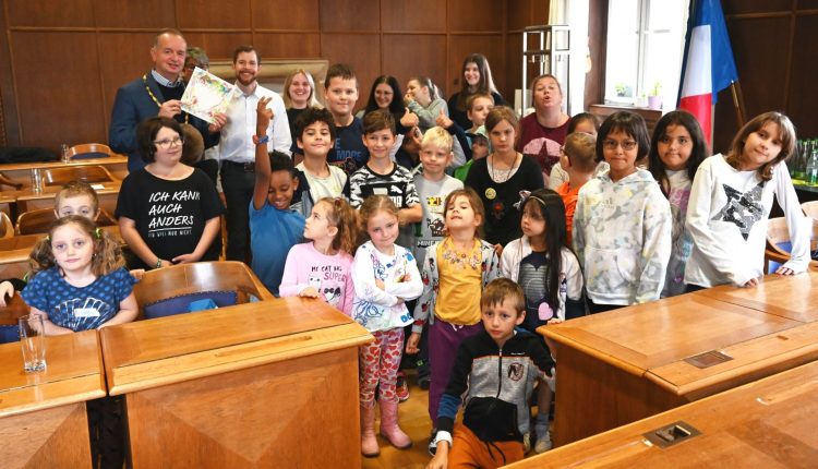Im Rahmen der Spendenübergabe begrüßte Deffner die Kinder, die in dieser Woche die Ferienbetreuung besuchen, im historischen Sitzungssaal des Stadthauses. Dort hatten die Kinder die Möglichkeit, die Amtskette des Oberbürgermeisters zu sehen und mehr über seine Arbeit zu erfahren. Die Ferienbetreuung findet noch bis 25. August 2023 statt.