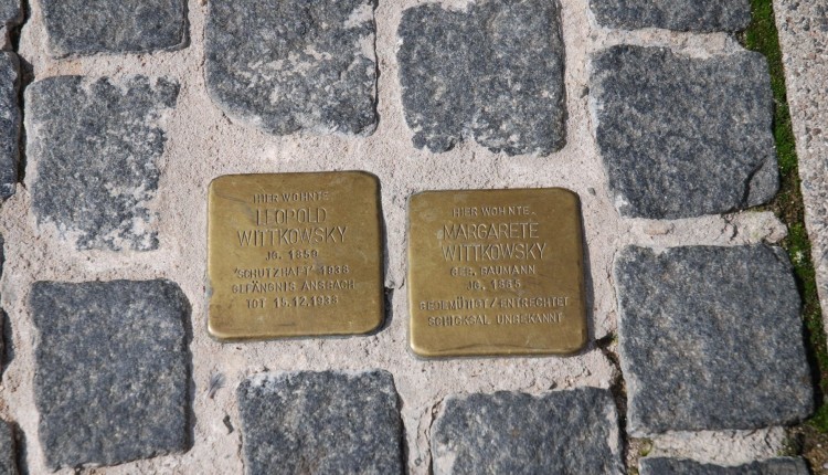 Ansbach, 04.11.2019 – Am Mittwoch, den 6. November 2019, werden ab 12 Uhr in Ansbach 13 weitere sogenannte „Stolpersteine“ verlegt. Die kleinen Gedenktafeln aus Messing vom Kölner Künstler Gunter Demnig erinnern Bewohner und Besucher an die individuellen Schicksale von Opfern der nationalsozialistischen Gewaltherrschaft. Zur Verlegung der Stolpersteine sind alle Bürgerinnen und Bürger herzlich eingeladen. Nach einer kurzen Begrüßung in der Jüdtstraße 20 wird der Frankenbund Ansbach über die einzelnen Schicksale der Opfer informieren.