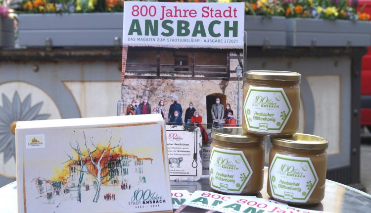 Das Stadtjubiläum aufs Brot oder Vernaschen: Dank der neuen süßen Souvenirs der Stadt Ansbach ist dies nun möglich: Anlässlich des 800-jährigen Jubiläums gibt es nun einen Ansbach-Honig und Pralinen. Ganz nach dem Motto „regional & nachhaltig“ gibt es den „Ansbacher Blütenhonig“ des Hobbyimkers Georg Schuster neu im Sortiment.