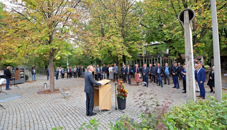 Ansbach, 4. Oktober 2021 – Oberbürgermeister Deffner sprach anlässlich des Tages der Deutschen Einheit am Mauerstück an der Riviera „Die Einheit Deutschlands und damit Frieden und Freiheit für alle Menschen muss unser vordergründiges gemeinsames Ziel bleiben. Diese Botschaft soll vom Tag der Deutschen Einheit ausgehen.“ Mit diesen Worten schloss die Ansprache von Oberbürgermeister Thomas Deffner im Rahmen der Gedenkstunde zum Tag der Deutschen Einheit am 3. Oktober.