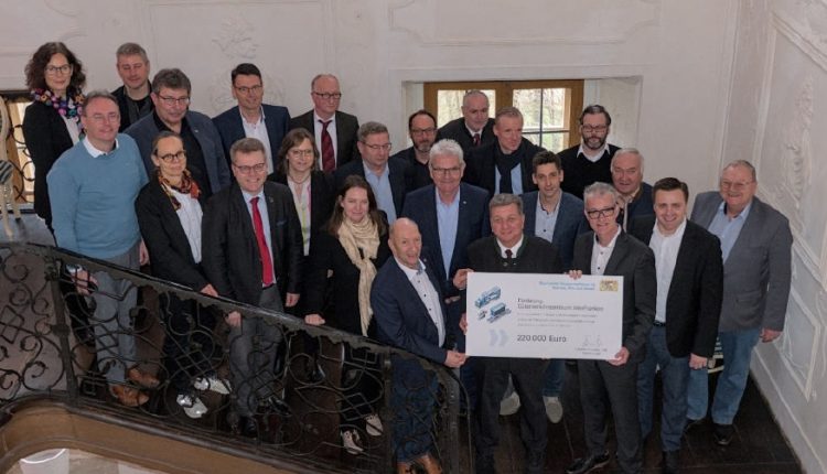 Hierzu begrüßte der Zweckverband wichtige politische Persönlichkeiten und Unternehmensvertreter aus der Region. Die kürzlich ermittelten Potenziale, die sich für den Güterumschlag von der Straße auf die nachhaltige Schiene und die Ansiedlung im Industrie-/ Gewerbepark am geplanten Standort ergaben, erlauben den nächsten wichtigen Schritt in Richtung Realisierung. Aus diesem Grund übergab Herr Staatsminister Bernreiter den offiziellen Förderbescheid des Bayerischen Staatsministeriums für Wohnen, Bau und Verkehr für die weitere Genehmigungsplanung der innovativen Umschlaganlage an den Zweckverband. „Im kürzlich vorgestellten Güterverkehrskonzept Bayern wird bereits betont, dass der