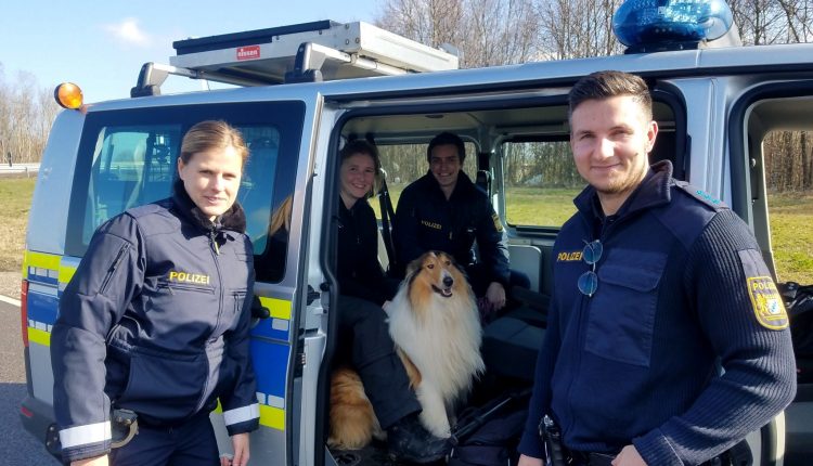 Über zwei Stunden beschäftigte ein Langhaarcollie am Dienstag, 19.03.19, mehrere Polizeistreifen, ehe die für den fließenden Verkehr nicht ungefährliche Situation ein gutes Ende nahm. Gegen 07.30 Uhr waren bei der Einsatzzentrale der Polizei in Nürnberg zahlreiche Anrufe über den Vierbeiner eingegangen, der als „Geisterläufer“ zwischen den Anschlussstellen Uffenheim- Langensteinach und Gollhofen unterwegs war. Die Streifen rückten umgehend mit der eindeutigen Fahndungsbeschreibung „Lassie“ aus. Kam es zu einem Sichtkontakt mit der Polizei, konnte sich das Tier stets in Gebüschen und unter Nutzung geeigneter Deckungen der beabsichtigten „Festnahme“ entziehen. Nach einiger Zeit und kurzfristigen Vollsperrungen Richtung Würzburg, konnte der Collie dann dazu bewegt werden, die Autobahn an der Anschlussstelle Gollhofen „ordnungsgemäß“ zu verlassen. Dort ging das „Fangerless“ im Umfeld einer Rastanlage noch einige Zeit weiter, ehe es gemeinsam mit einer Diensthundeführerin gelang, das Vertrauen des Rüden zu gewinnen. Schnell wurden neue Freundschaften geschlossen, die sogar in einem Gruppenfoto mündeten. Unter Polizeibegleitung ging es schließlich in ein Tierheim. Da der Fundhund gechipt war, konnte der Besitzer schnell ausfindig gemacht werden – wie zu erfahren war, hatte sich „Lassie“ unerlaubt auf Hasenjagd begeben.