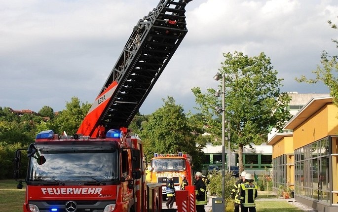 Da die Drehleiter der Freiwilligen Feuerwehr Ansbach turnusgemäß gewartet werden muss, unterstützt die US Feuerwehr Katterbach für rund sechs Wochen bei Einsätzen die Ansbacher Wehr.