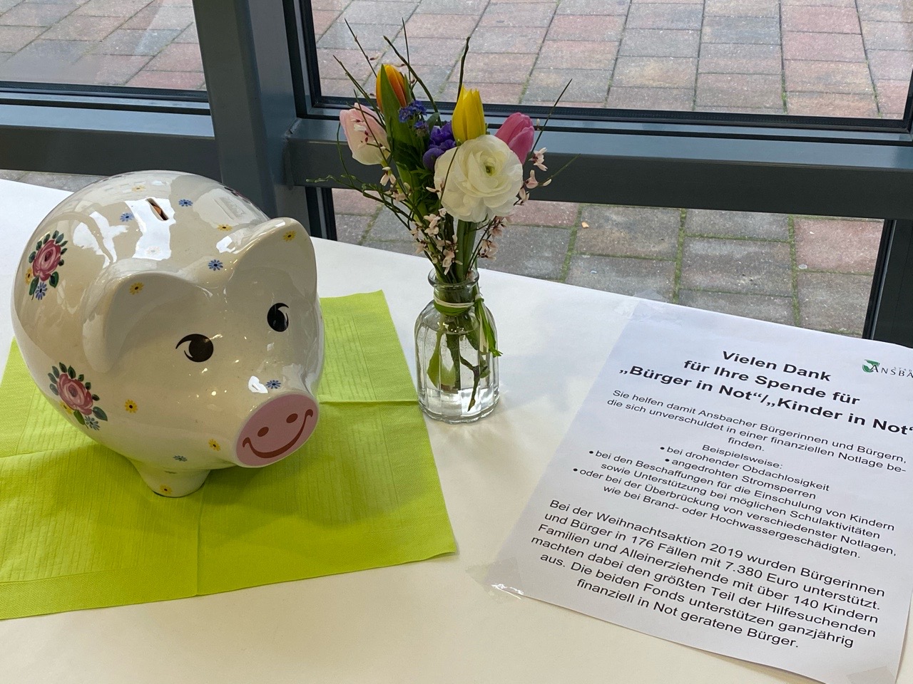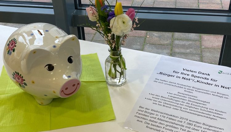 Ansbach, 28. Dezember 2020 – Auch in diesem Jahr werden Ansbacher Bürgerinnen und Bürger, die sich unverschuldet in einer finanziellen Notlage befinden, mit der Weihnachtsaktion „Bürger in Not“ und „Kinder in Not“ unterstützt. Die Auszahlung konnte allerdings nicht wie gewohnt im Onoldiasaal stattfinden, sondern die Gelder wurden anhand von Empfehlungen aus dem Sozialamt und dem Jobcenter an die Betroffenen ausgezahlt und überwiesen. Insgesamt wurden 8.240 Euro ausgezahlt – 4.600 Euro aus der Stiftung „Kinder in Not“ und 3.640 Euro aus der Stiftung „Bürger in Not“.