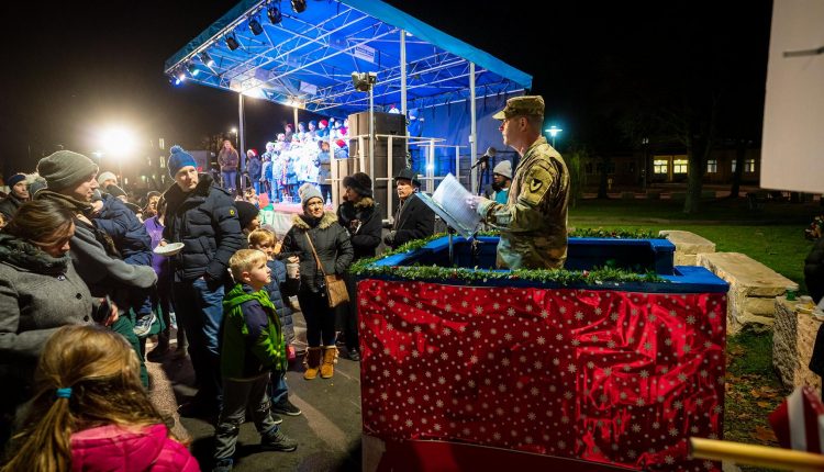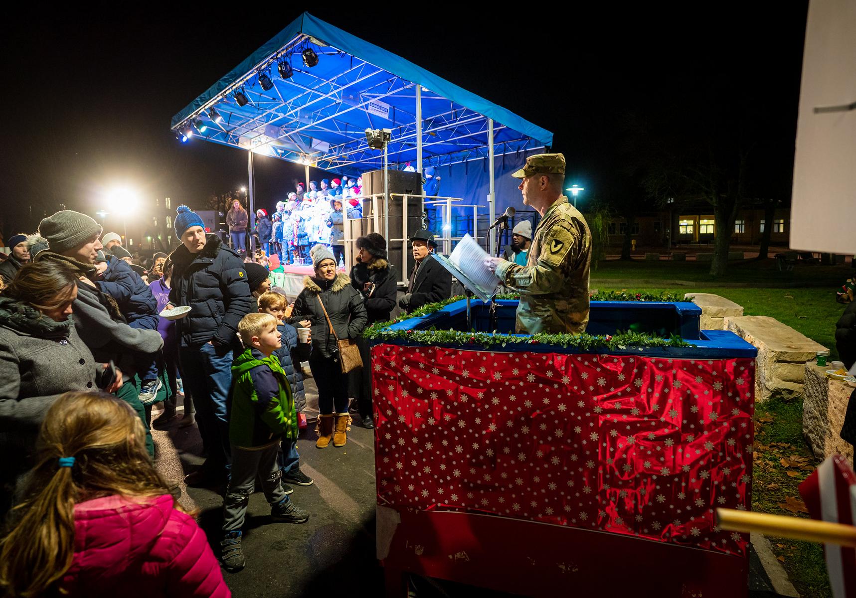 Ansbach, 09.12.2019 – Eine feierliche Stimmung machte sich in der US Garnison Ansbach bemerkbar, als der Standortkommandeur Oberst Steven M. Pierce alle Besucher des Festes zur feierlichen Beleuchtung des Weinachtsbaumes am 6. Dezember 2019 in der Kaserne Katterbach begrüßte.