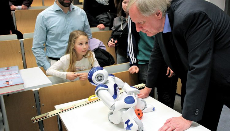 Immer wieder stiehlt ihm der kleine weiß-blaue Plastikmann die Show: Er winkt den Zuhörern und wünscht: „Guten Abend oder Grüß Gott, wie man in Bayern sagt. Ich bin ein Roboter und viel auf Reisen. Das ist manchmal ganz schön anstrengend.“ Dann kickt Nao einen vor ihm liegenden Fußball und rezitiert danach mit dramatisch zur Seite ausgestreckten Armen aus Shakespeares Hamlet: „Sein oder Nichtsein, das ist hier die Frage.“ Oder der Roboter legt ein fernöstlich angehauchtes Tänzchen aufs Parkett. Das Publikum ist jedes Mal auf den Vorträgen begeistert, wo auch immer der Experte auftritt. Nao reagiere auf Gesichter und versuche dann zu verstehen, was das Gegenüber sage, erklärt der Zukunftsforscher. Manchmal sei er selbst überrascht, was der Roboter alles anstelle. Bei einer Veranstaltung sei der kleine Plastikmann stehengeblieben und habe gesagt, dass er Halsschmerzen habe, so Eberl. Hinterher stellte sich heraus, dass einer der Motoren im Nacken heiß gelaufen war und erst abkühlen musste.