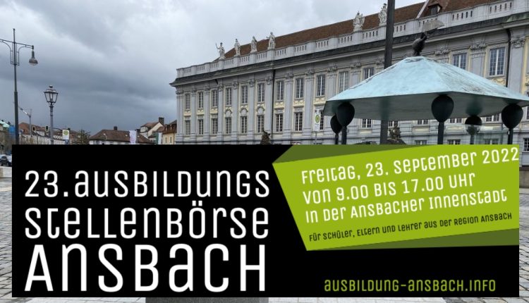 Ansbach, 19. August 2022 – Die Ausbildungsstellenbörse findet am Freitag, 23. September 2022 von 09.00 bis 17.00 Uhr unter freiem Himmel in der Ansbacher Altstadt statt. Die Veranstaltung ist ein erfolgreiches Gemeinschaftsprojekt der IHK Nürnberg für Mittelfranken, der Handwerkskammer für Mittelfranken, von Stadt und Landkreise Ansbach sowie der Agentur für Arbeit Ansbach-Weißenburg und findet bereits zum 23. Mal statt.