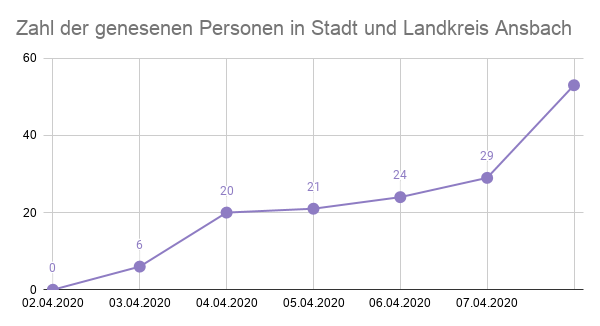 Davon gelten 53 Personen in Landkreis Ansbach und Stadt Ansbach als genesen.