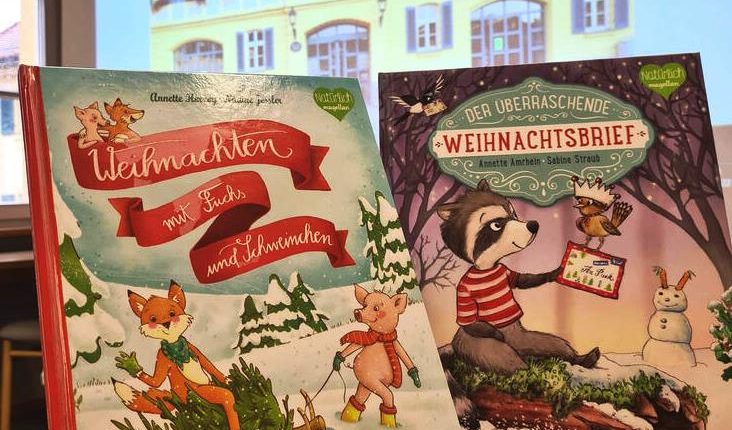 In „Weihnachten mit Fuchs und Schweinchen“ von Anette Herzog haben Fuchs und Schweinchen Weihnachten vergessen und keine Geschenke füreinander besorgt. Sie fassen einen kühnen Plan, um den Weihnachtsmann mit einem Sack voller Geschenke zu ihnen zu locken. Im Bilderbuch „Der überraschende Weihnachtsbrief“ von Annette Amrhein wünscht sich der kleine Waschbär nur eines: er möchte gern einen eigenen Brief bekommen. Sein Onkel erfährt von dem Wunsch und schreibt ihm, ein kleiner Zaunkönig soll den schweren Brief ausliefern. Ob das gut geht?